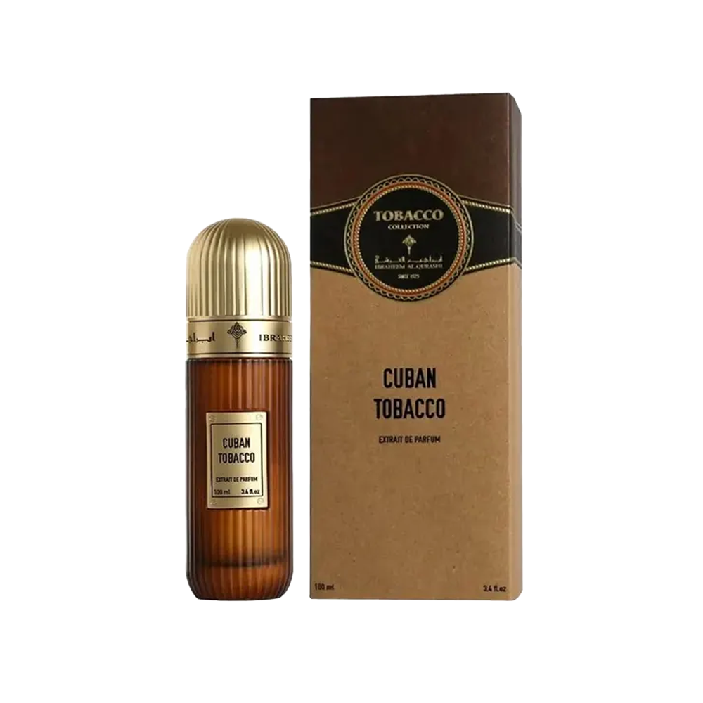 Ibraheem Al Qurashi Cuban Tobacco Extrait de Parfum is a creamy and deep unisex perfume. It is made for people who like strong and smooth scents with a bold feel. The opening offers smoky Cuban tobacco and soft cocoa, giving a warm, slightly sweet start. In the middle, a creamy sandalwood leather vanilla blend is smooth and elegant. It dries out and the soft sweetness of honey and coconut is a good balance to the smoky notes.