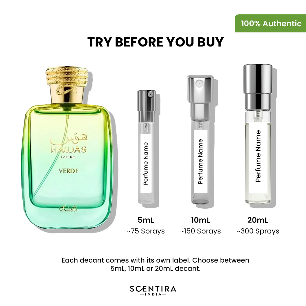 Decants are small & travel-friendly samples of luxury perfumes taken directly from full-sized bottles.